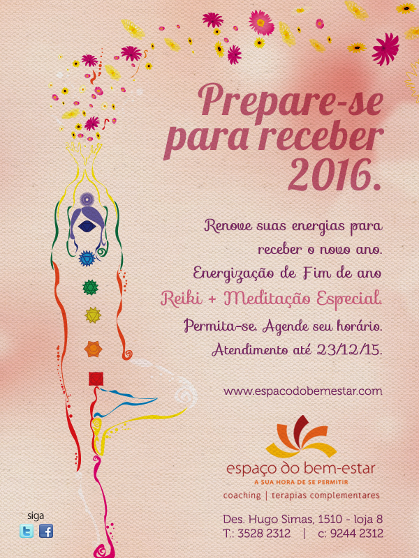 Aos que estão sempre aqui no Espaço do Bem-Estar, sabem que essa sessão* é diferente pois nela trabalho uma meditação especial com o intuito de fechar um ciclo e preparar a energia para receber o novo ano.